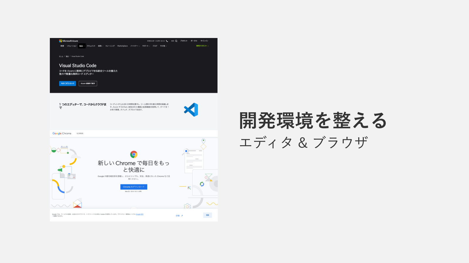 webサイトを作成するためには、ファイルを編集するためのソフトであるテキストエディタと、テキストエディタに入力したコードが実際にどのように表示されるのかを確認するブラウザの2つが必要です。