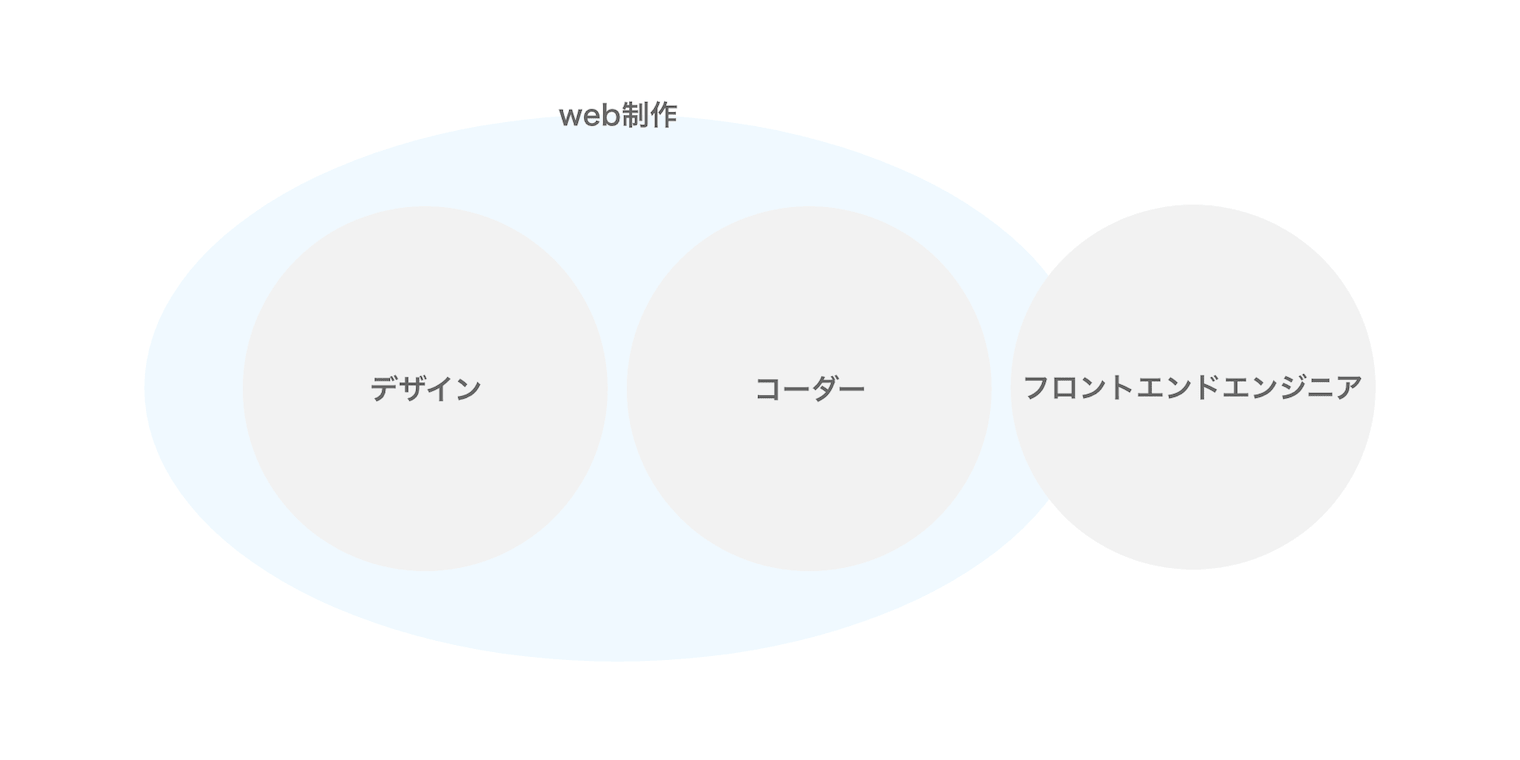 デザインとコーディング(コーダーの仕事)は同じ人がやる場合もありますが、別々の場合も多いです。フロントエンドエンジニアは主にJavaScriptを使ってwebサービスなどを作る職種で、web制作でもJavaScriptは使うので一部含めています。ただし、フロントエンドエンジニアの方々が使っているようなフレームワークやライブラリを使うことはあまりありません。