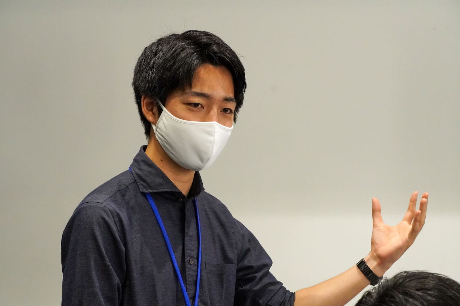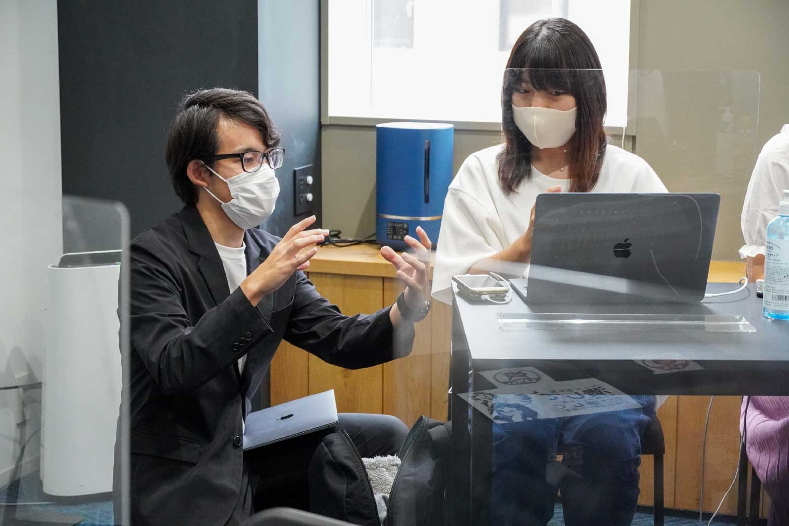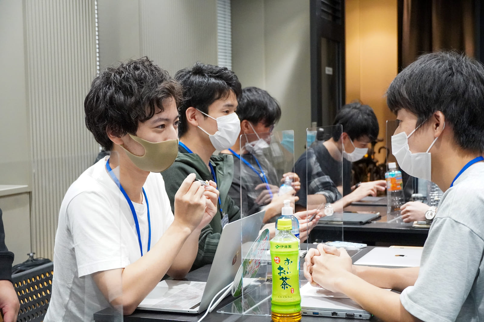 目の前や隣の人とすぐ話せるから、作業時間には議論し合いながら進めることができます。