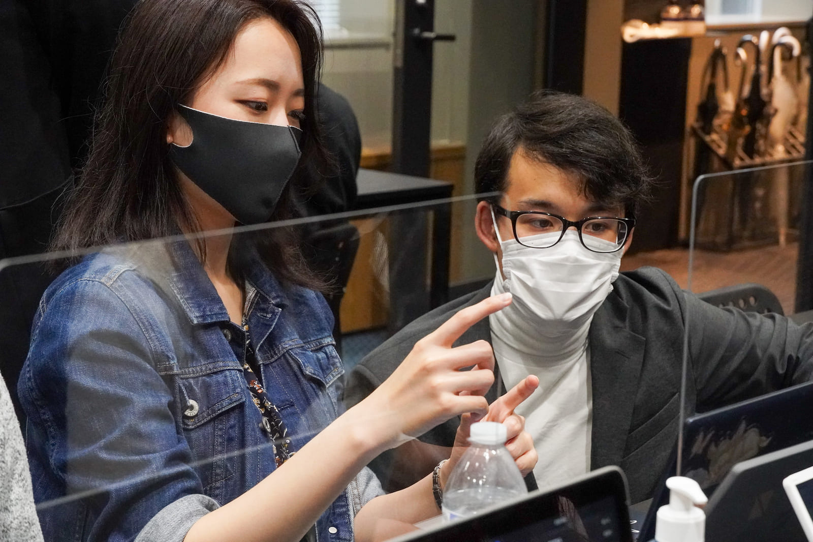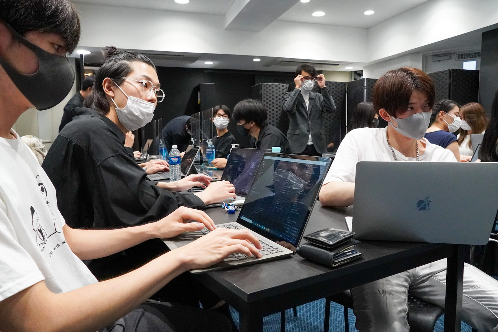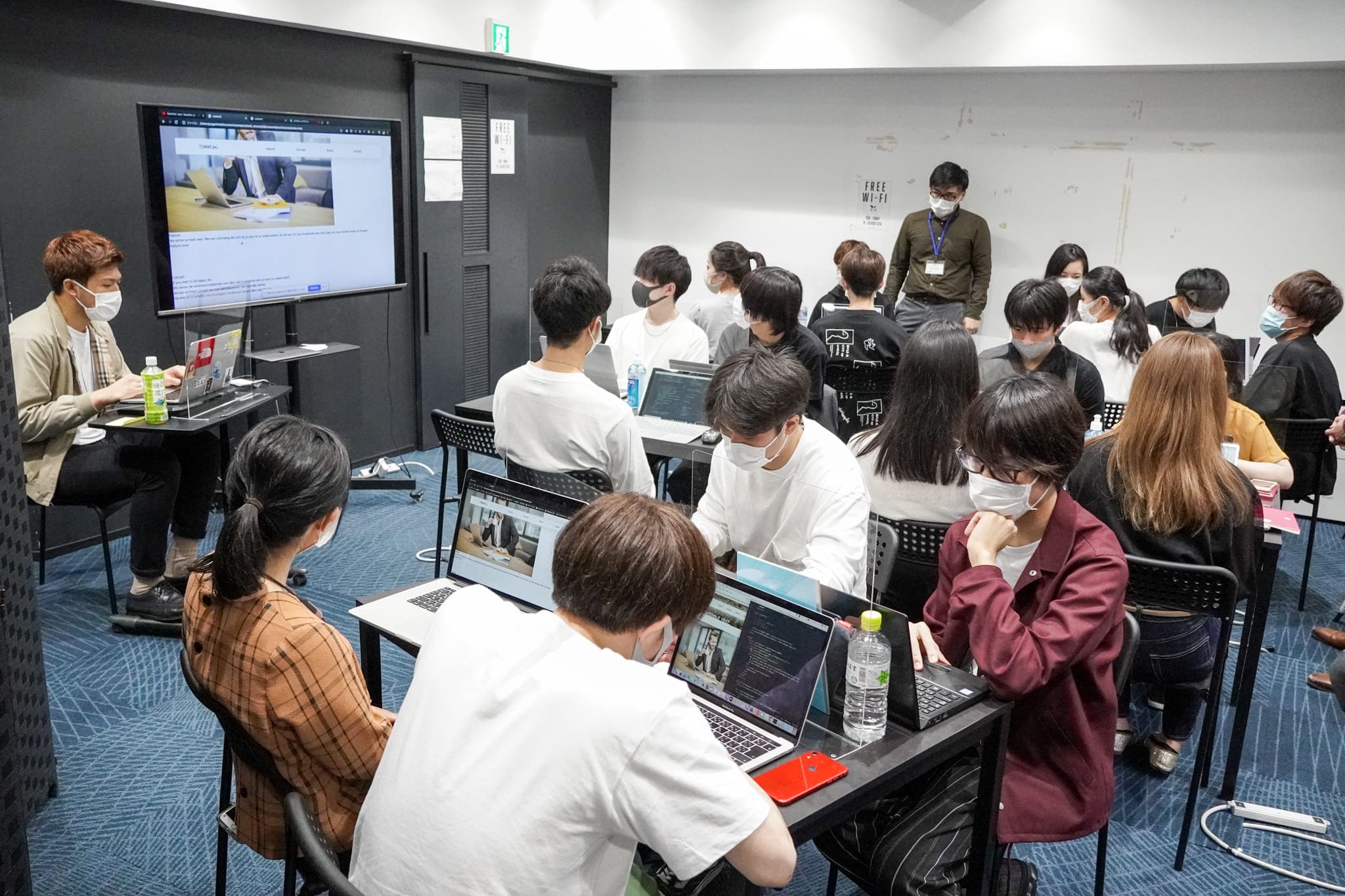 目の前や隣の人とすぐ話せるから、作業時間には議論し合いながら進めることができます。