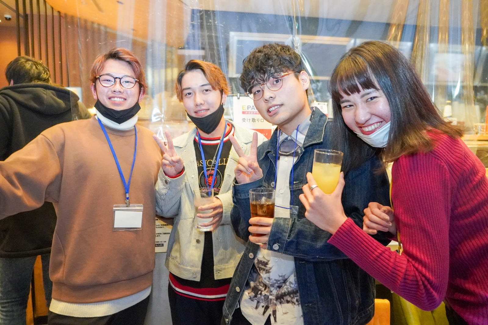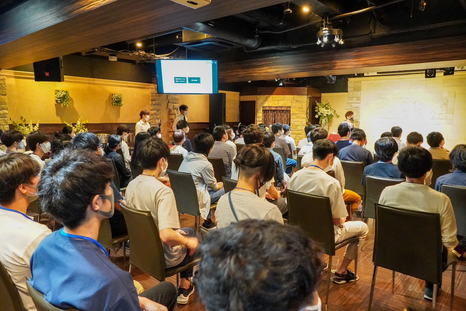 交流会には運営会社TOMAPの社長(写真左下)も参加してます!社長としての経験なども赤裸々にお話ししてくれます。卒業生も常に参加してくれているので、学習や卒業後の進路についても生の声を聞くことができます。